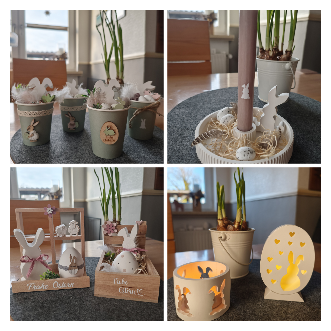 Die Osterdeko wird oft nach den Wünschen meiner Kunden hergestellt. Der eine möchte es schön bunt zu Ostern und der nächste eher schlicht.
